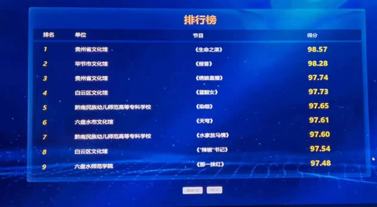 “群星奖”作为群众文艺领域的政府最高奖,每三年举办一届,旨在加大文化惠民服务力度,提升全民文化艺术素养,繁荣群众文艺创作,推出一批讴歌党、讴歌祖国、讴歌人民、讴歌英雄的优秀群众文艺作品,增强人民群众的文化获得感和幸福感。第十九届“群星奖”贵州省选拔赛分为音乐、舞蹈、戏剧、曲艺四个门类,最后入围决赛的作品舞蹈类15个,音乐类15个,戏剧类8个,曲艺类8个。